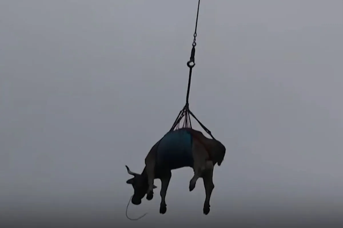Щоб їм допомогти, довелося задіяти рятувальників. Близько 10 тварин спустили в долину на вертольоті з висоти в 1 950 метрів.