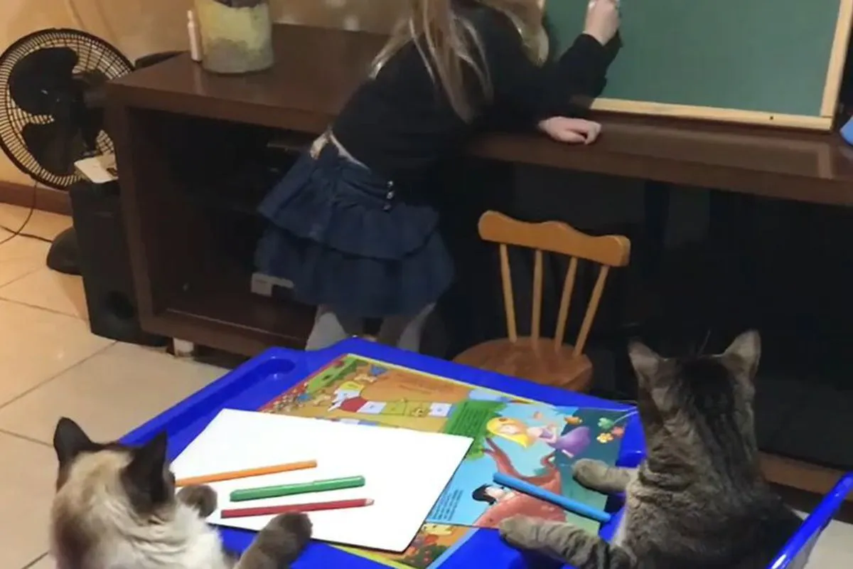 Маленька дівчинка з Бразилії на ім’я Кларінья захотіла спробувати себе в ролі вчителя і показала двом своїм котам, як намалювати квіточку. Вона посадила Дугласа Роберто і Джурандіра за парту і почала урок малювання, інформує Ukr.Media.