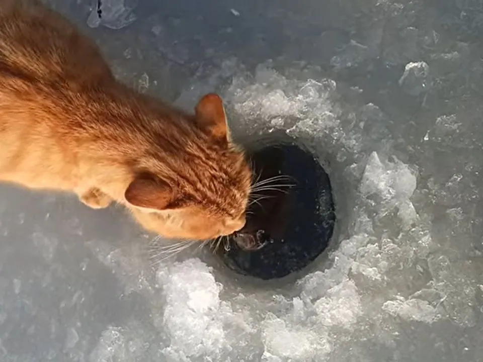 Зимова рибалка — справа не проста. Спорядитись, прорубати лунку, почекати, поки здобич клюне на гачок. Однак цей кіт вирішив, що він найхитріший, інформує Ukr.Media.