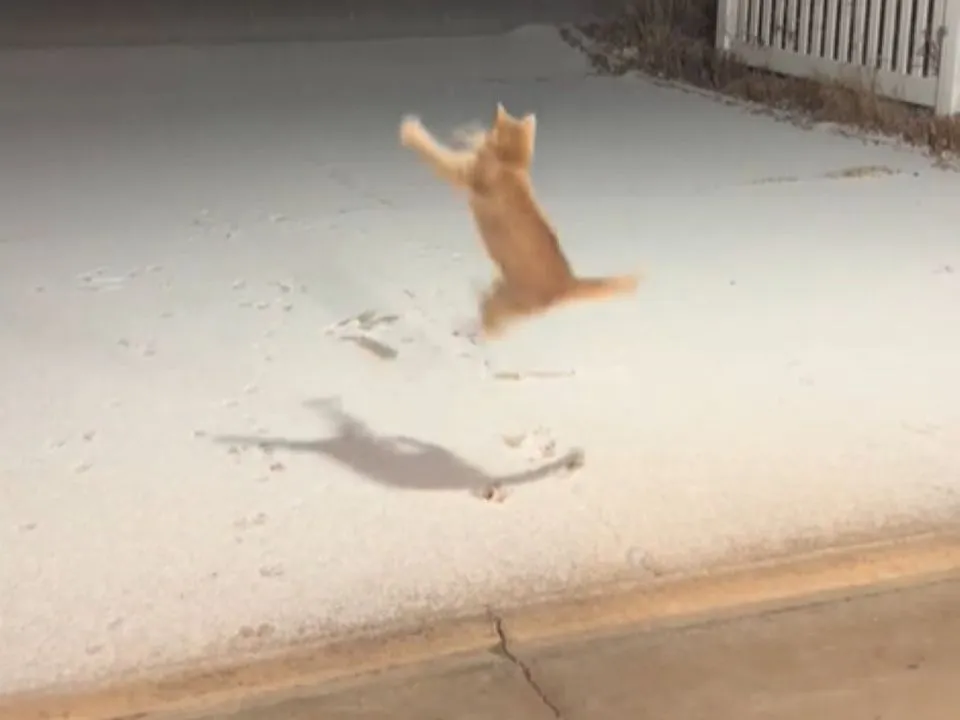 Побачивши сніг, що падає, він розгубився і не одразу зорієнтувався, як потрібно поводитися. Пухнастик почав ловити сніжинки, які летіли, в перервах здивовано дивлячись на оператора з питанням в очах: "Що це таке, господарю? І як його зловити?"