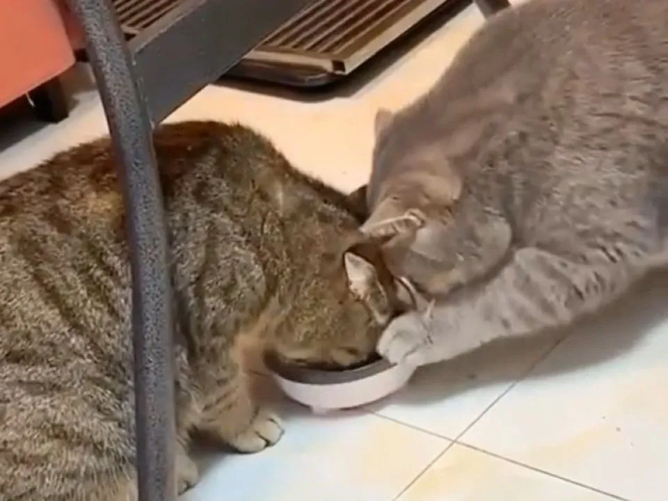 Вони не тільки спокійно їдять сухий корм з однієї мисочки, а й пересувають її один одному, щоб кожному було комфортно трапезувати. Вихованню цих пустунів можуть позаздрити не тільки інші пухнасті, а й люди.
