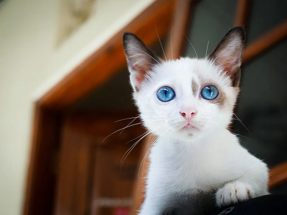 — Двері ви відчиняєте — кішка відчуває рух повітря. Кішки це чудово відчувають. Коли до неї підходите — вона вібрацію від підлоги вловлює, це кішки теж прекрасно вміють. А коли годуєте, напевно, холодильник відчиняєте, щоб їжу дістати? Кішка відчуває запах з холодильника, і запах їжі, яку ви в миску кладете. А голос ваш вона не чує, на жаль. Орієнтується на запах, зір, вібрацію, рух повітря. Глуха у вас кішка. Очі блакитні, шерсть біла — таке часто серед білих кішок трапляється. Глухота на одне або обидва вуха. У вашої на обидва. Може тому кошеня й викинули.