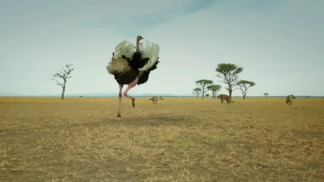 Ці гігантські птахи мають один із найсильніших ударів у тваринному світі. Обороняючись, вони здатні «прихлопнути» навіть лева. Африканським страусам доводиться стикатися з різними хижаками — на них полюють леви, леопарди, гепарди й… плямисті гієни.