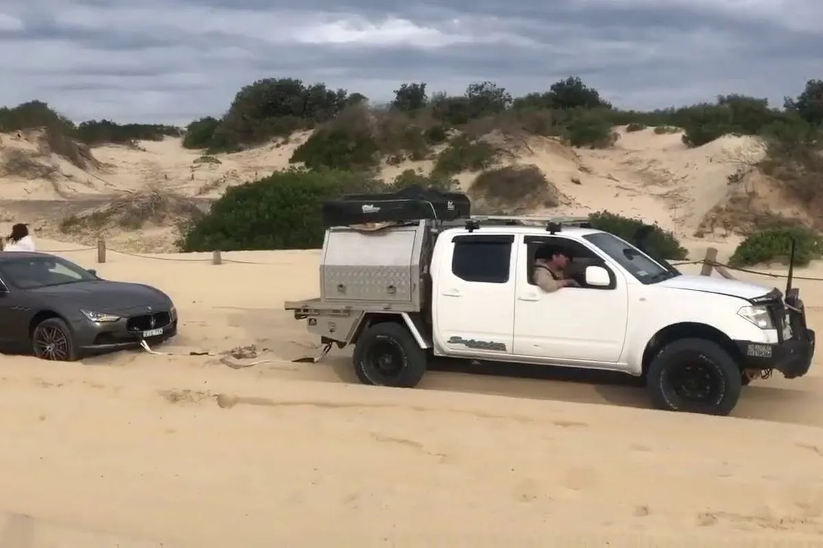 Крім того, водій пікапа вирішив визволити седан з піску одним потужним ривком замість того, щоб витягувати Ghibli планомірно і не поспішаючи.