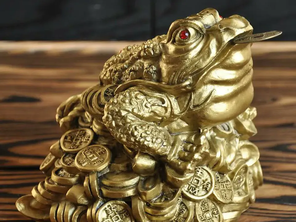 Також її називають трилапою жабою. Згідно з ученням феншуй, фінансові проблеми в домі пов’язані з потоком поганої енергії Ці. Вирішенням цієї проблеми може стати грошова жаба, яка пригнічує негативні потоки енергії, приносячи удачу всім членам сім’ї.