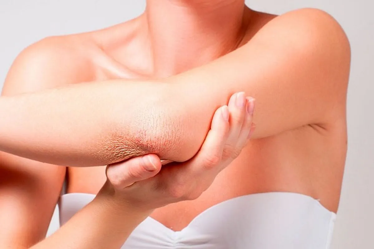 Сухі лікті можуть бути результатом занадто тривалого перебування у воді, особливо гарячій і хлорованій. Для миття вибирайте засоби з PH від 4 до 6. Підійдуть також засоби, наприклад, з молочною кислотою в складі.