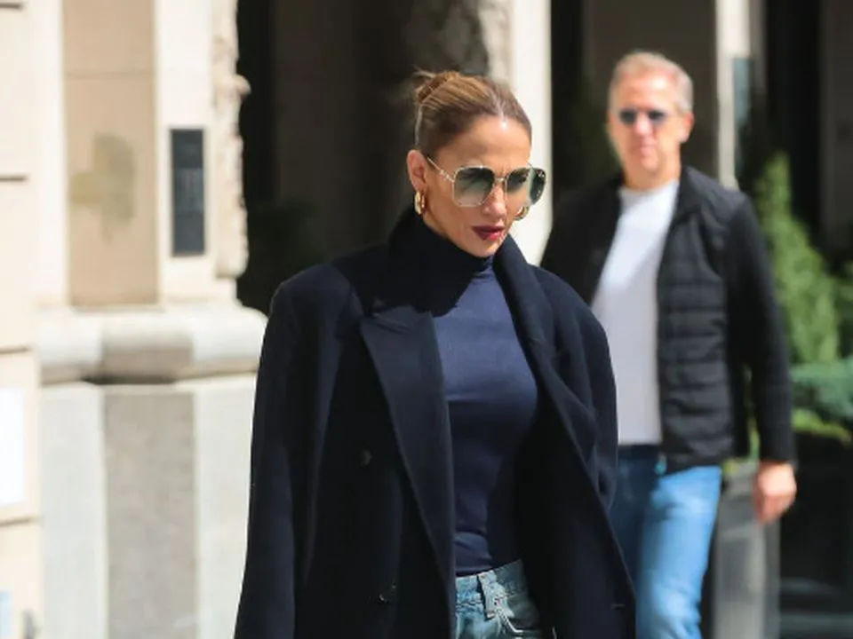 Папараці застали знаменитість на вулицях, де вона продемонструвала ефектний образ з величезним переважанням синього кольору та його відтінків. Лопес була одягнена у темно-синє пальто та вільні деніми з потертостями та дірками. Вона доповнила свій образ темно-синьою водолазкою, блакитною сумочкою Chanel та джинсовими чоботями.