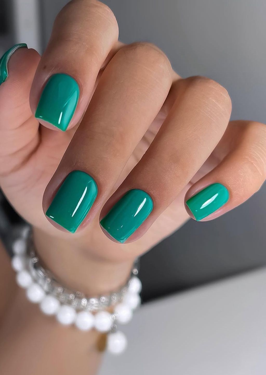 Смарагдовий — це глибокий, насичений відтінок зеленого з синім підтоном, який асоціюється з розкішшю та елегантністю. Він дійсно універсальний і виглядає дорого. Смарагдовий колір може варіюватися від світлішого, ближчого до бірюзи, до дуже темного, almost black emerald. Він чудово виглядає на будь-якій довжині нігтів. Щоб підкреслити "дорогоцінність" смарагду, поєднуйте його з золотими або срібними акцентами (тонка смужка, геометрія, блискітки на одному нігті). Також матовий топ перетворює смарагдовий на оксамитовий, глибокий відтінок, що виглядає дуже вишукано, особливо для вечірніх виходів. Такий колір підійде до будь-якого вбрання та обстановки, чи то пляжна тусовка, чи вечірня прогулянка в компанії коханої людини.