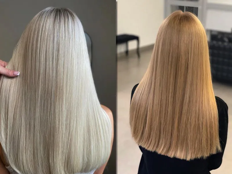 Дуже світлий, «випалений» блонд, наче після місяця на скандинавському пляжі. Він чистий, трохи попелястий, без найменших натяків на жовтий.