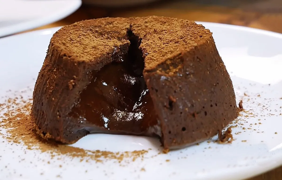 - Готові кекси потрібно трохи остудити, а потім обережно перевернути на тарілку. Присипте фондан какао, подавайте гарячим. Найкраще шоколадний фондан подавати з кулькою вершкового морозива, як це роблять в ресторанах.