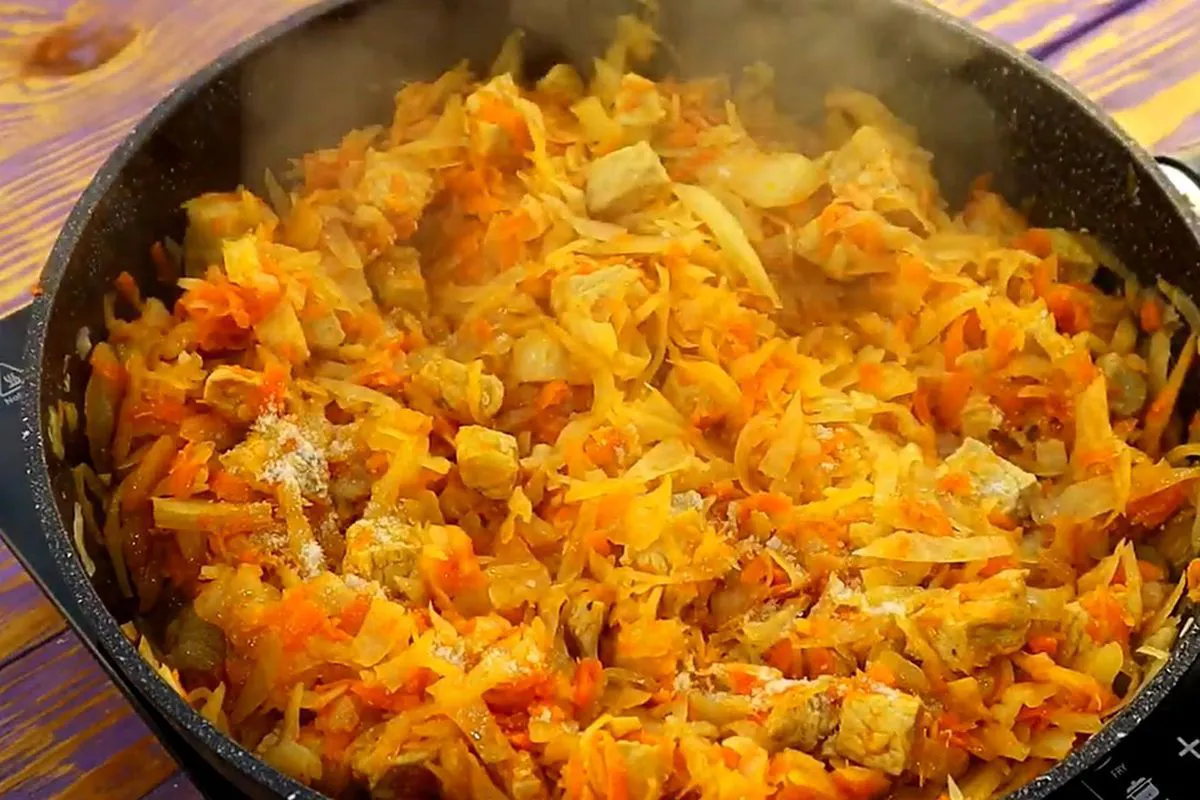 Хочемо з Вами поділитися рецептом смачної тушкованої капусти з м’ясом. Рецепт дуже легкий і простий!