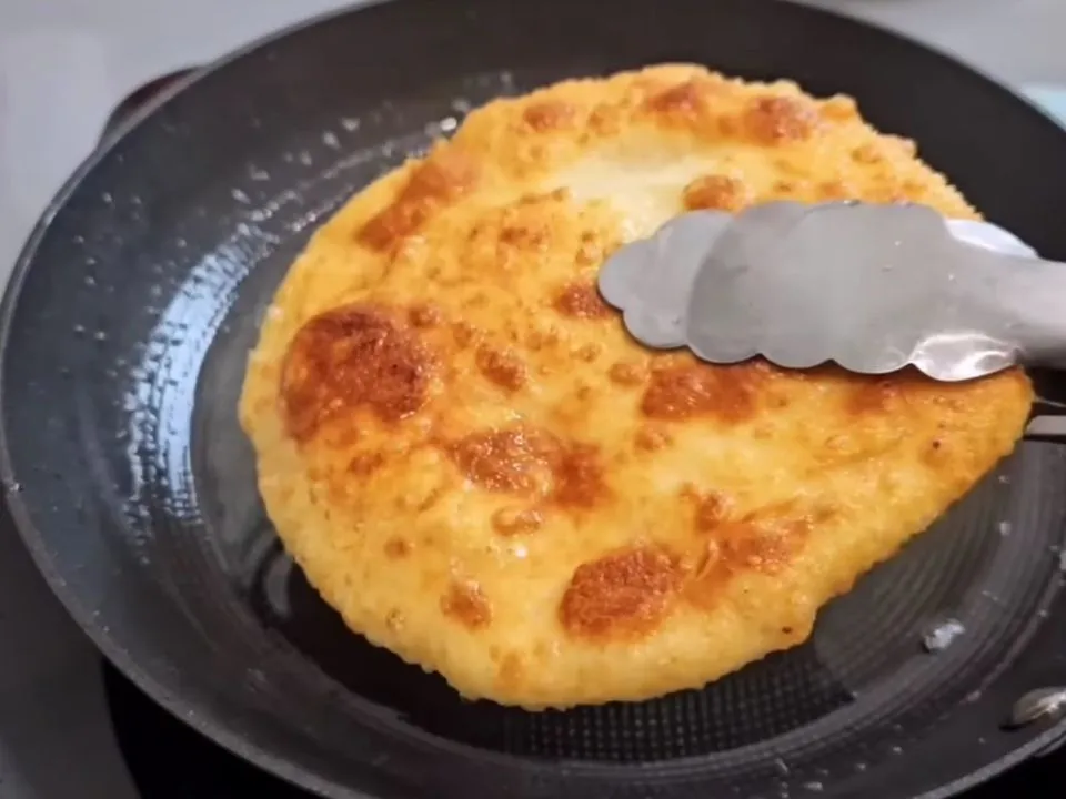 Обсмажуйте коржик на розпеченій олії з двох сторін до золотистої скоринки.