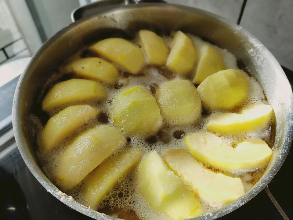 Далі очистіть картоплю. Наріжте її довільними шматочками. Помістіть картоплю в каструлю та залийте водою. Відправте ємність з овочем на вогонь. Доведіть її вміст до кипіння. Потім додайте 1 ч. л. цукру, 0,5 ч. л. лимонного соку і сіль за смаком. Акуратно перемішайте і варіть картоплю до готовності на помірному вогні.