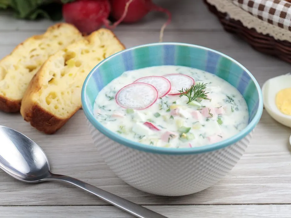З чого зазвичай складається окрошка? Зазвичай використовуються такі інгредієнти: кефір/квас, м’ясо, варене яйце, картопля, огірки, цибуля, редиска, зелень.
