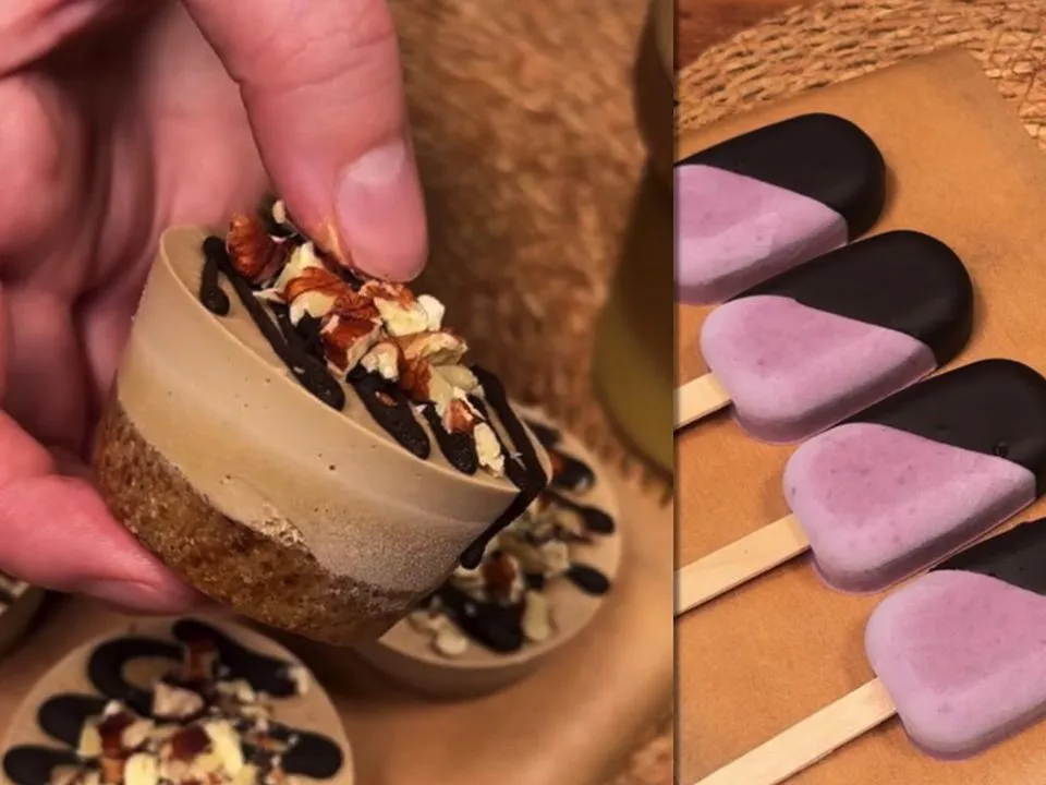 Розподіліть масу по формах для виготовлення морозива і заморозьте. Готове морозиво можна занурити у розтоплений шоколад.