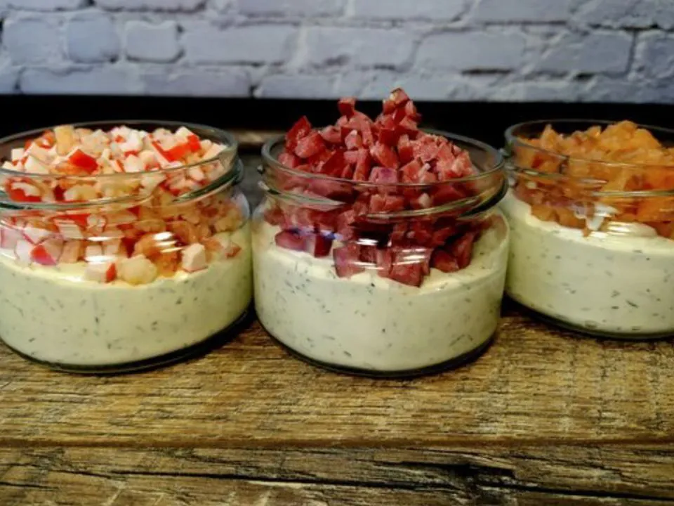 Для другої баночки в моїй морозилці знайшлося штук 10 заморожених варених креветок та 1 крабова паличка.