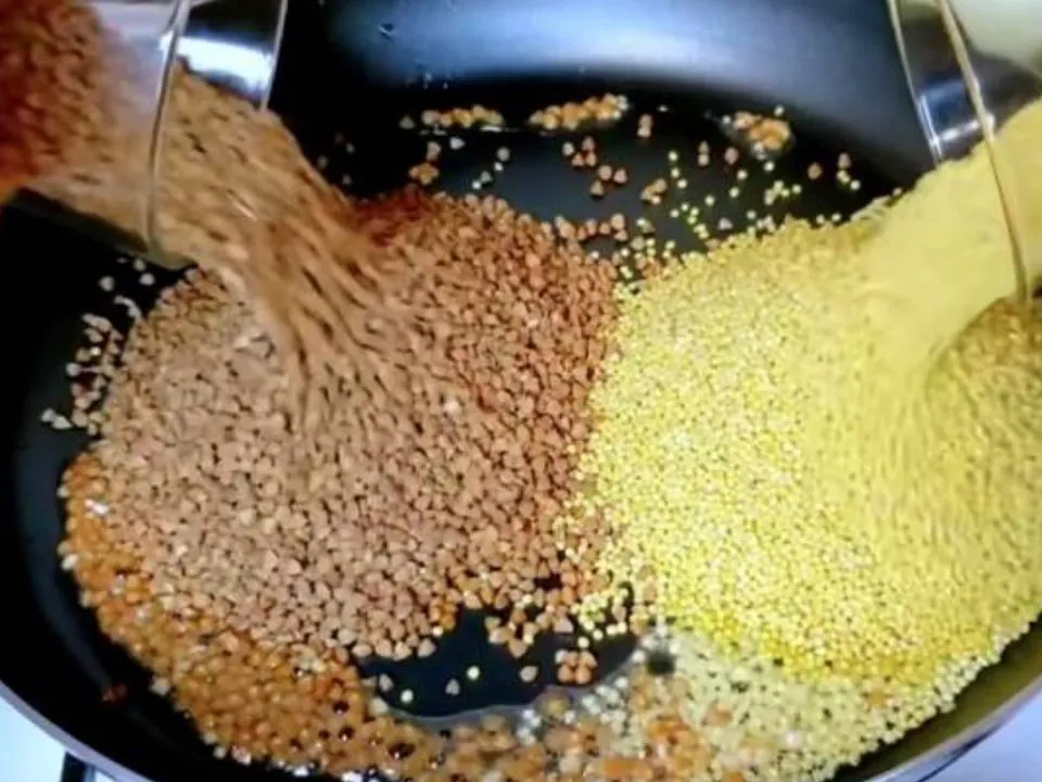 Розігрійте сковороду з 3 ст. л. олії. Всипте пшоно та гречку 1:1. Обсмажуйте на повільному вогні близько 7-10 хвилин, інформує Ukr.Media.