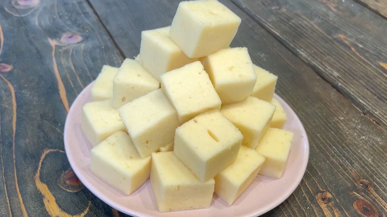 Готову пастилу дістаньте з форми і наріжте кубиками. Щоб ніж не грузнув, його можна трохи змочувати теплою водою.