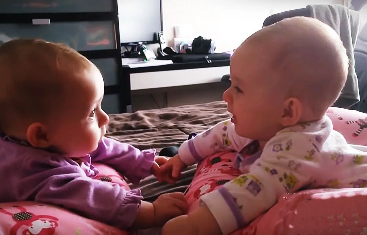 Це відео, безумовно, змусить вас сказати "вау". Дві ідентичні дівчинки-близнючки нарешті усвідомили, що можуть розмовляти одна з одною, а також триматися за руки. Як же це мило! Такий дорогоцінний момент! Це навіть виглядає збоку так, ніби вони дійсно говорять одна до одної на своїй дитячій мові. Як же чудово!