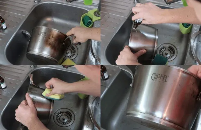 Забруднення зникають на очах! Реально працює на нержавійці без особливих зусиль.