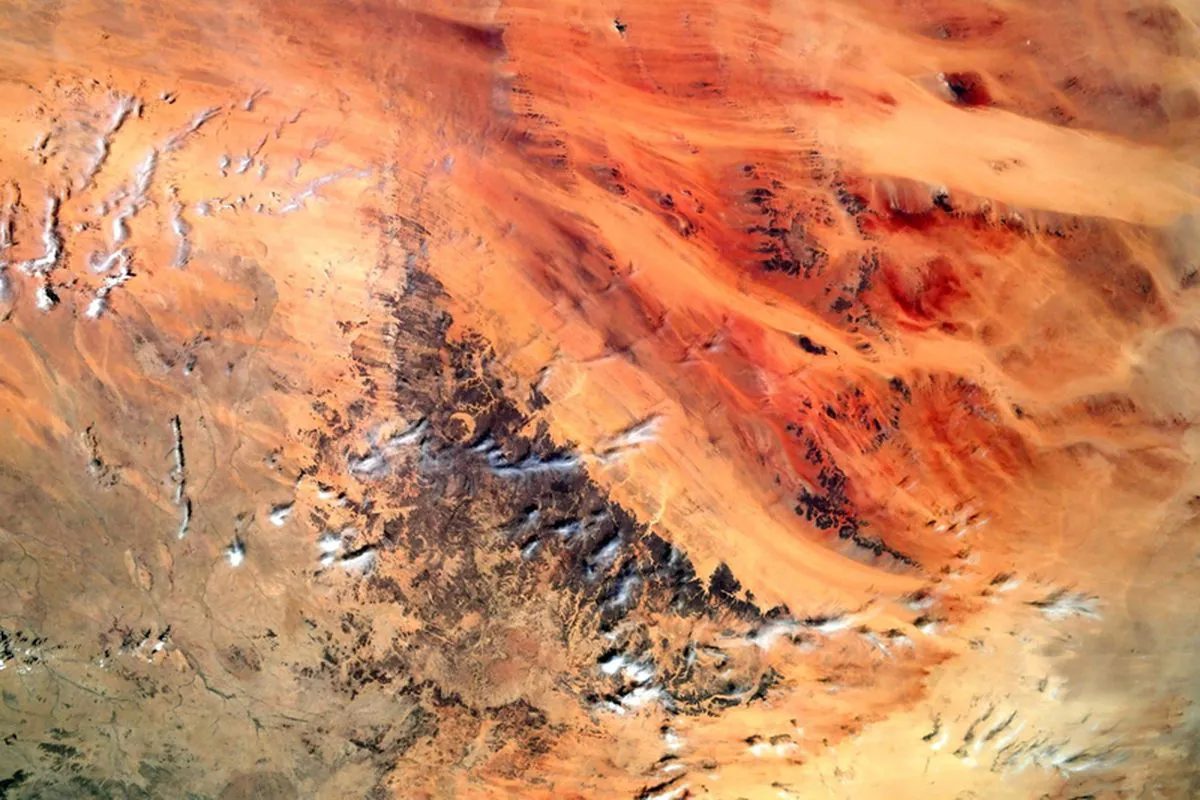 Червонувато-помаранчевий пейзаж з глибоким поглибленням в центрі виглядає страхітливо схожим на поверхню Червоної планети. "Я думав, що перебуваю на орбіті Марса, коли спостерігав цей вид! Ніяких хмар не видно, а червоний і охристий кольори простягаються до горизонту", — зауважив автор кадрів.
