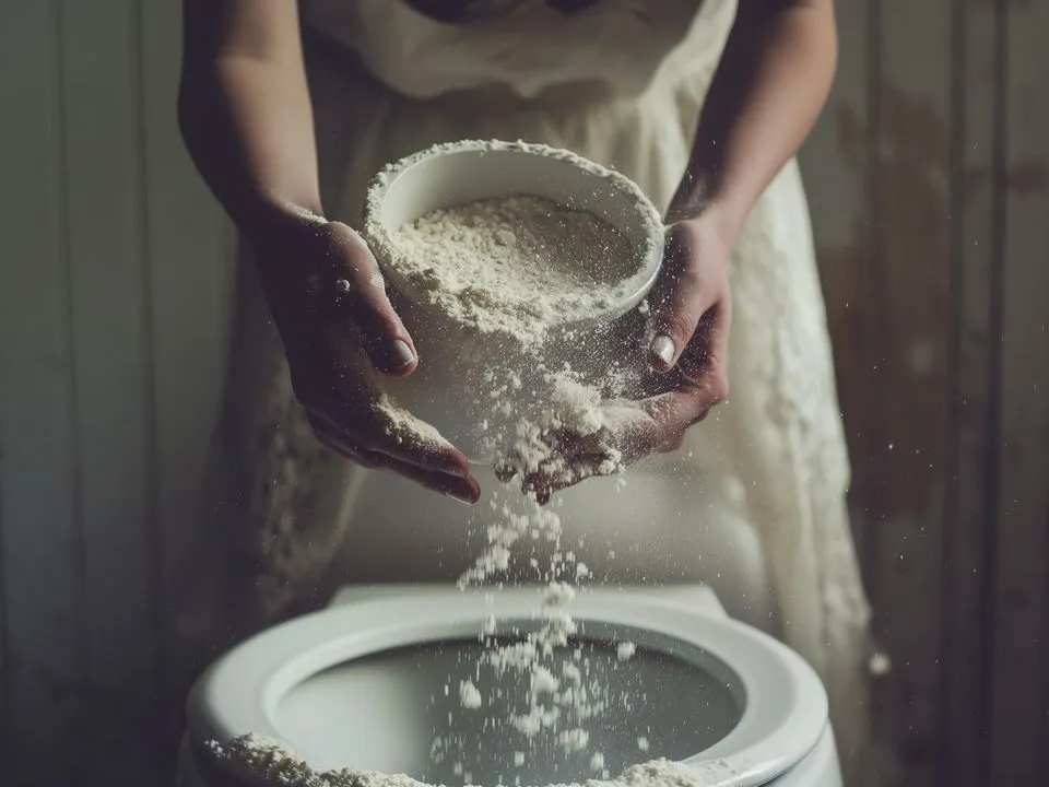 Перше що треба зробити, так це змити воду, щоб намочити поверхню. Потім рівномірно посипати внутрішню частину унітаза порошком і залишити на 20 хвилин. Залишається тільки змити засіб йоржиком і насолоджуватися чистотою!