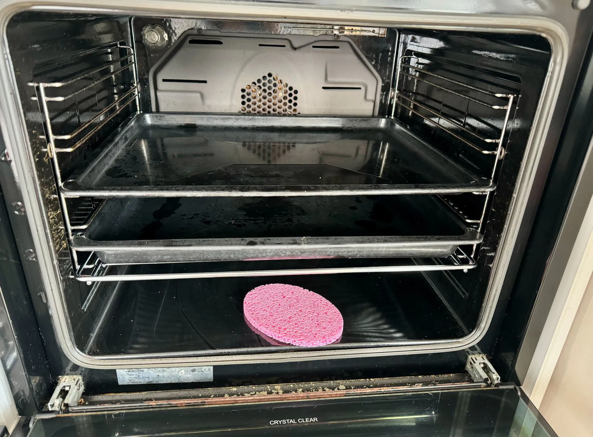 Харчову соду часто рекомендують для прибирання через її лужний рн і м’яку абразивну структуру. Оскільки жир у духовці має кислотний pH, сода нейтралізує забруднення, не залишаючи при цьому подряпин чи інших ушкоджень. До того ж сода — дуже економний і органічний засіб, на відміну від багатьох гелів і порошків, що чистять, виробники яких обіцяють миттєве видалення жиру.