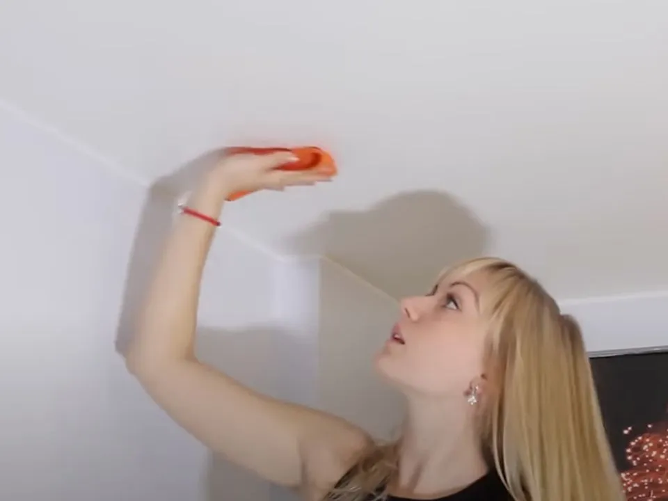 Протирайте стелю круговими рухами. Обережно протирайте поверхню легкими рухами, не натискаючи занадто сильно. Якщо пляма не змивається одразу — дайте їй трохи «відмокнути», не затирайте.