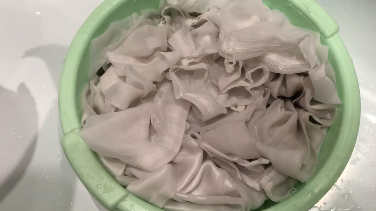 Тюль треба випрати — просто з порошком. Якщо він дуже забруднений, пожовтілий чи вкритий плямами — варто замочити його в невеликій кількості води з господарським милом.