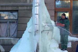 У Києві, завдяки нерозторопності комунальників, з'явився крижаний фонтан.