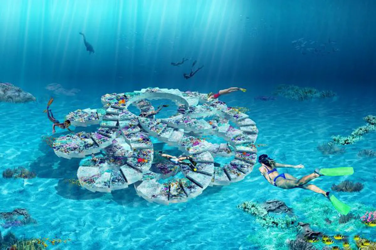 На дні встановлять кілька арт-інсталяцій, у тому числі авторства японського архітектора Шохея Шігемацу. Продукт його творчості візуально нагадує восьминога або танцюючі гвинтові сходи. Подібно справжньому атолу, вони створять тривимірну структуру, звичну і природну для морського життя. Багатошарові яруси органічної форми повинні забезпечити зростання коралів на них, таким чином, природа гармонійно впишеться в нову інфраструктуру.