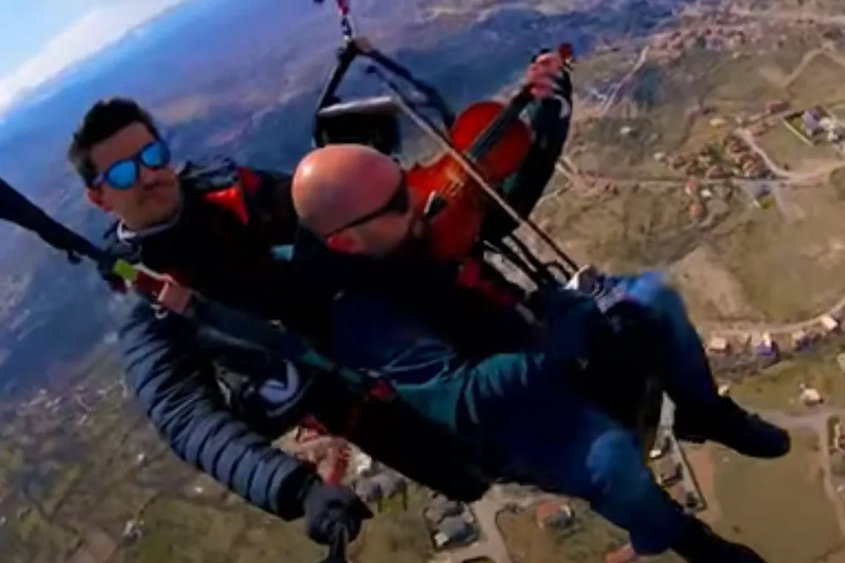 Приятелі піднялися на висоту 1500 метрів над мальовничою місцевістю в Туреччині, і, як з’ясувалося, у Фікрета був сюрприз. Музикант взяв з собою улюблену скрипку, щоб супроводити вражаючий політ ще й красивим саундтреком.