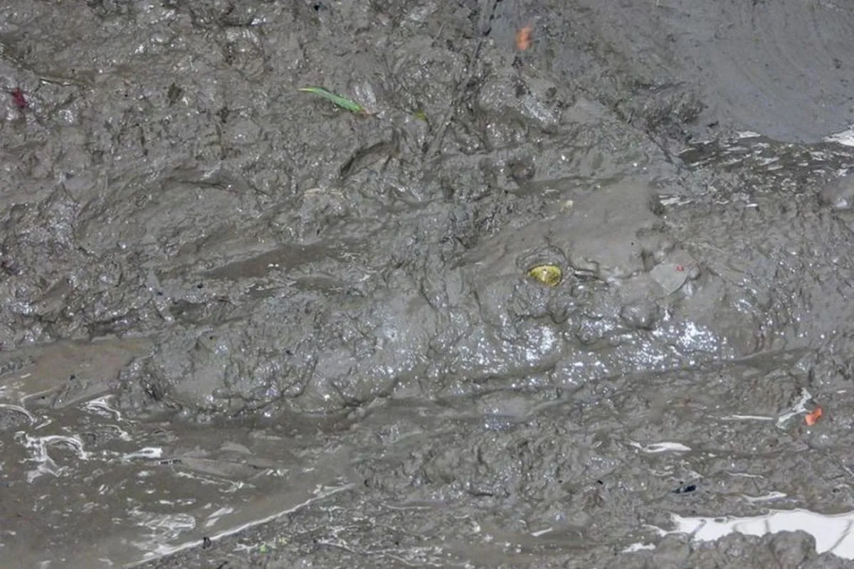 На кадрі зображений бруд, що приховує крокодила, якого у даному разі видає лише одна крихітна деталь.